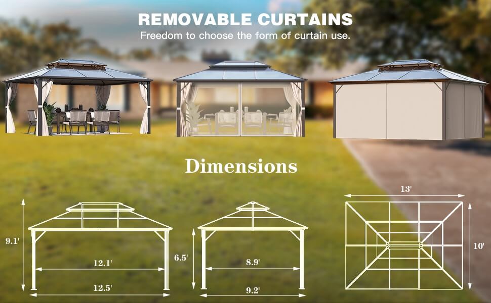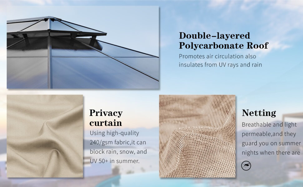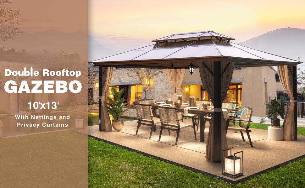 (Limit one per order)10'x13' Outdoor Polycarbonate Double Roof Hard Top Gazebo