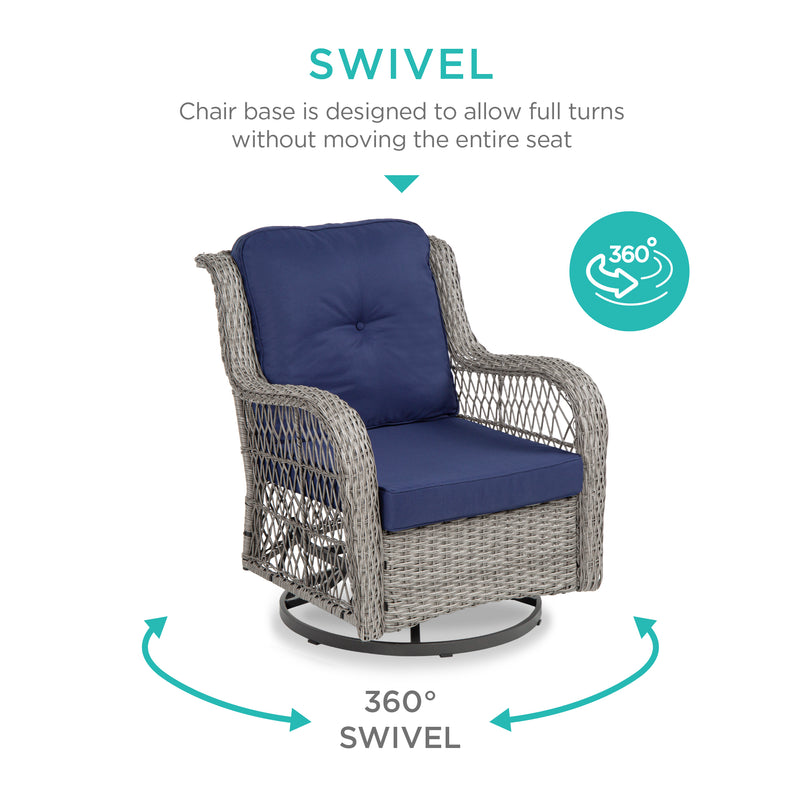 3-Piece Patio Wicker Bistro Furniture Set w/ 2 Swivel Rocking Chairs, Table