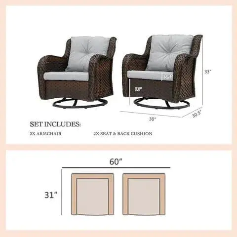 Linkwood Rocking Swivel Patio Chair with Cushions (Set of 2)