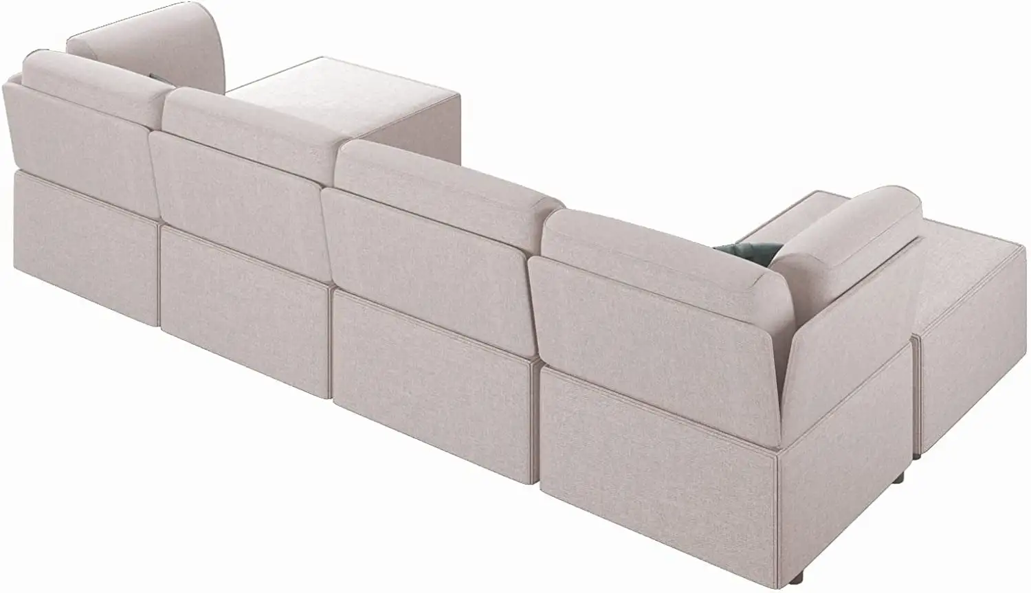 Mjkone U Shaped Modular Sectional Sofa, Convertible L Shaped Couch Sofa, Queen Sleeper Sofa Bed Couch,Variable Oversized Sectional Couches for Living Room, Beige