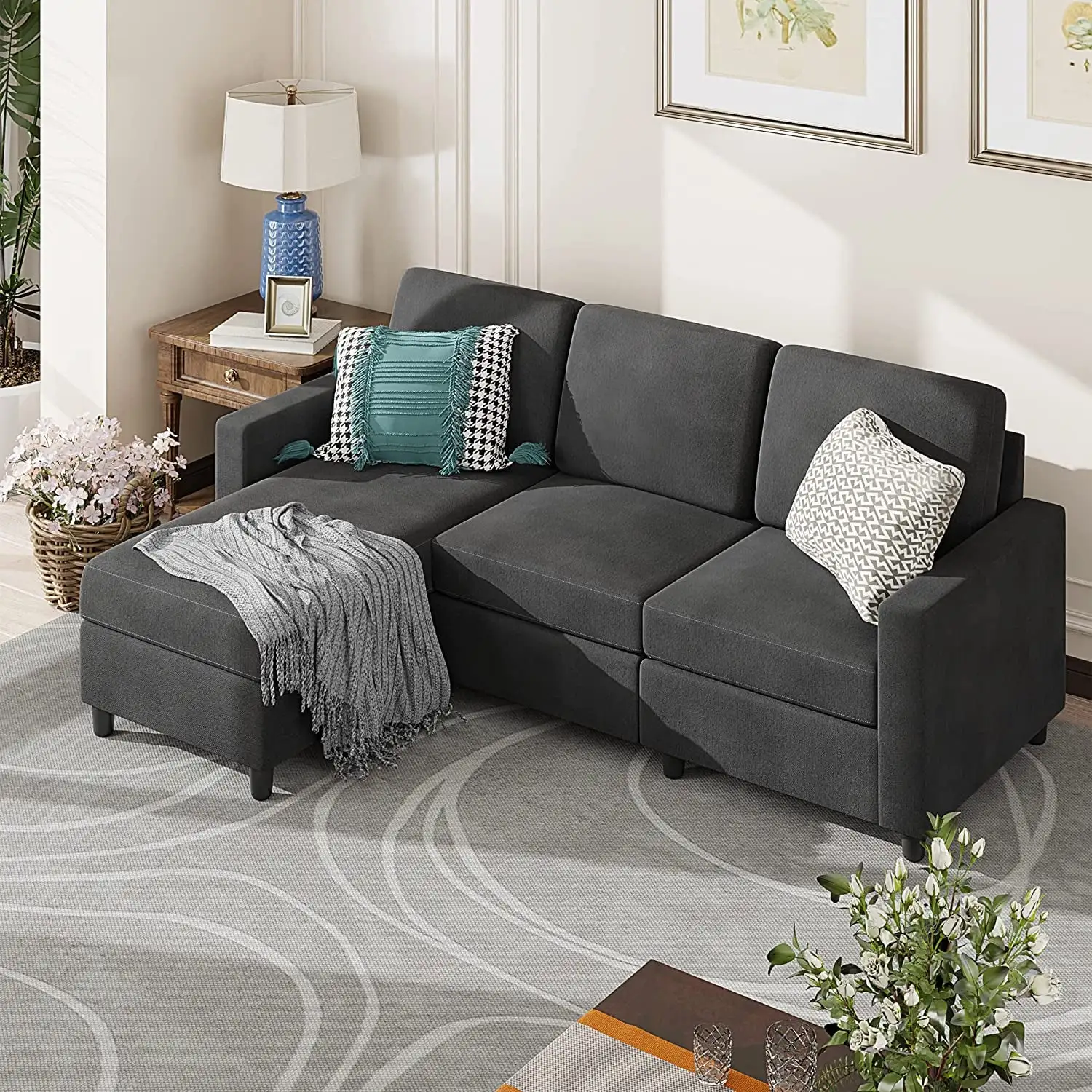 SUNLEI Convertible Sectional Sofa Couch L-Shaped Couch with Modern Linen Fabric 3-Seat Sofa Sectional with Reversible Chaise for Living Room/Small Space (Brown)