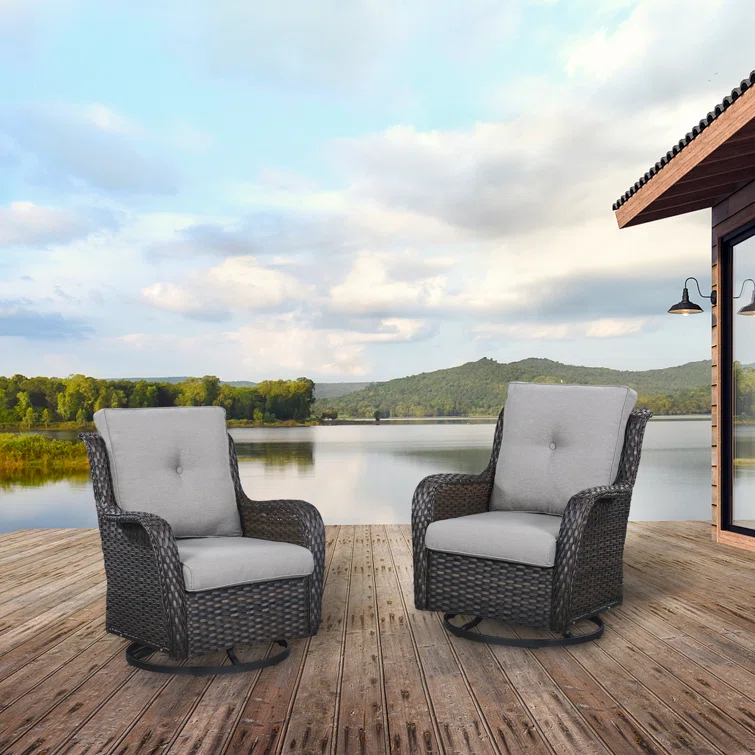 Wicker Rattan Swivel Patio Wicker Chairs (Set of 2)